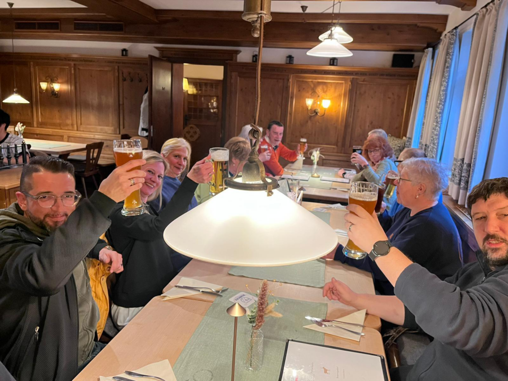 Kurzerhand entschieden wir uns gemeinsam für einen Ausflug zum Brauereigasthof Goldener Hirsch in Heubach. Dort ließen wir es uns richtig gut gehen – leckeres Essen, gute Getränke und beste Stimmung.